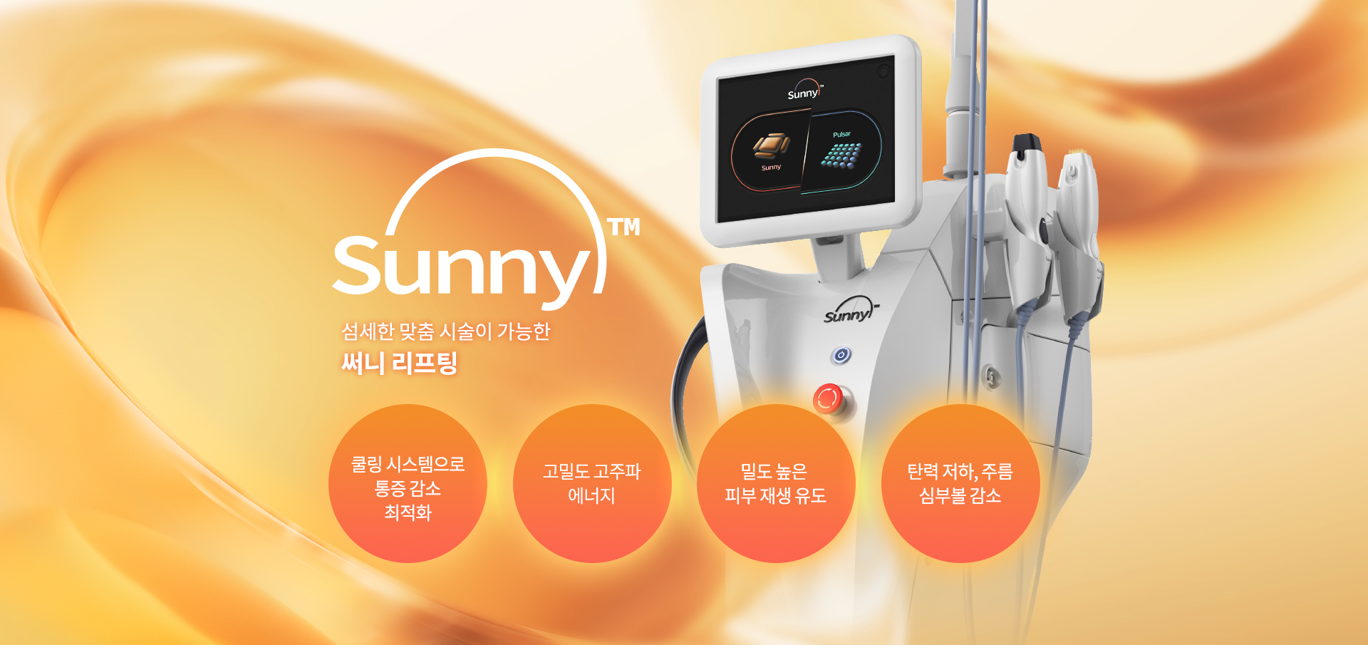 써니리프팅은 고주파(RF) 에너지를 이용하여 피부 탄력 개선 및 리프팅 효과를 얻는 비침습적 시술입니다.