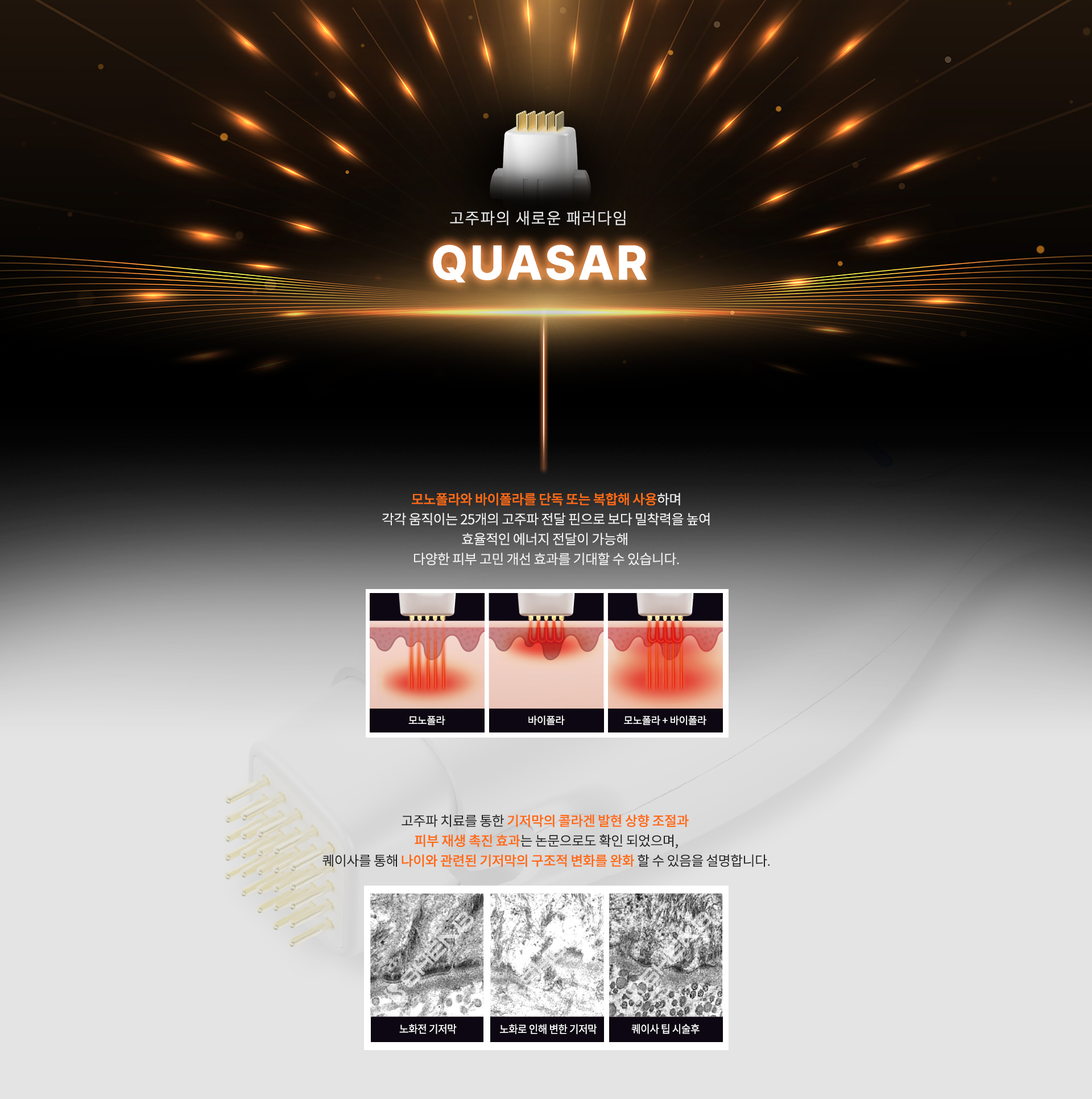 고주파 치료를 통한 기저막의 콜라겐 발현 상향 조절과 피부 재생 촉진 효과는 논문으로도 확인 되었으며, 퀘이사를 통해 나이와 관련된 기저막의 구조적 변화를 완화 할 수 있음을 설명합니다.