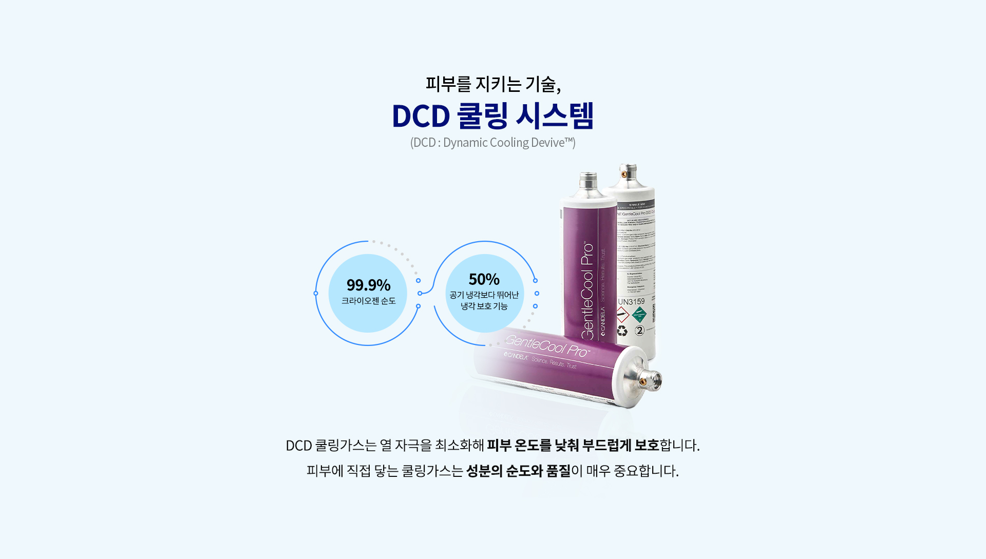 DCD 쿨링가스는 열 자극을 최소화해 피부 온도를 낮춰 부드럽게 보호합니다.