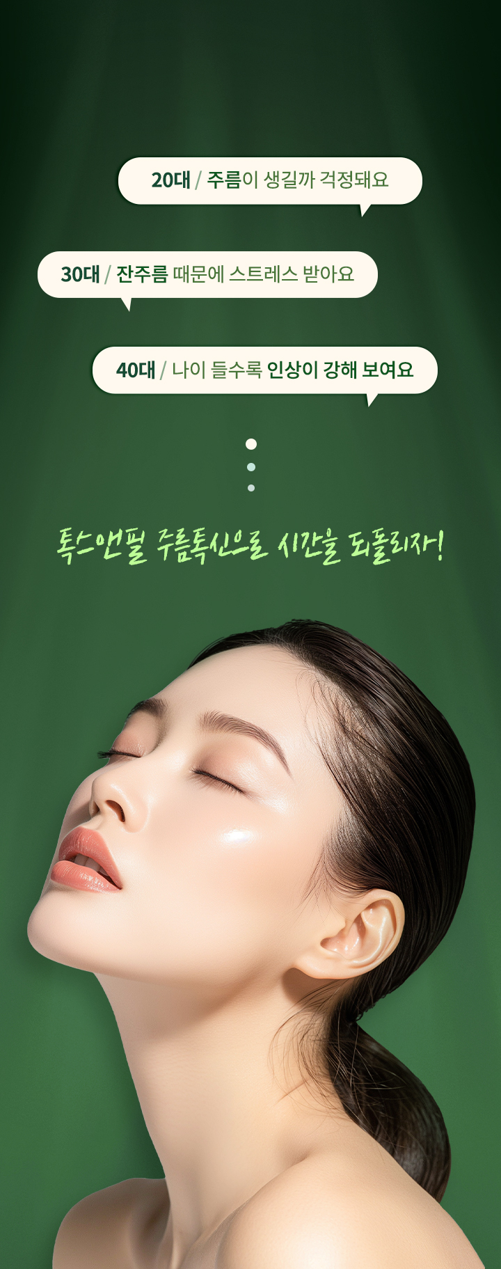 피부 표면에 남아 얼굴 근육을 사용하지 않아도 생기는 잔주름, 미세주름이 있습니다.