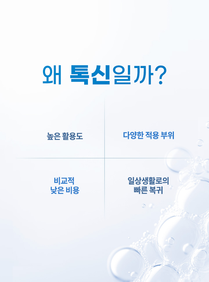 또한 땀이 과하게 분비되는 부위의 땀 분비량을 줄여주어 다한증 개선에도 효과적입니다.