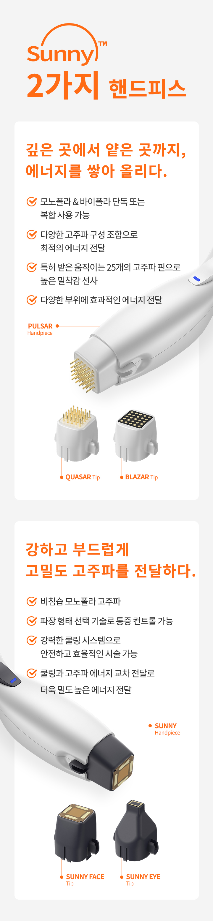 모노폴라와 바이폴라를 단독 또는 복합해 사용하며 각각 움직이는 25개의 고주파 전달 핀으로 보다 밀착력을 높여 효율적인 에너지 전달이 가능해 다양한 피부 고민 개선 효과를 기대할 수 있습니다.