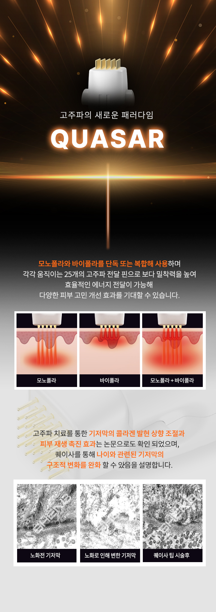 고주파 치료를 통한 기저막의 콜라겐 발현 상향 조절과 피부 재생 촉진 효과는 논문으로도 확인 되었으며, 퀘이사를 통해 나이와 관련된 기저막의 구조적 변화를 완화 할 수 있음을 설명합니다.