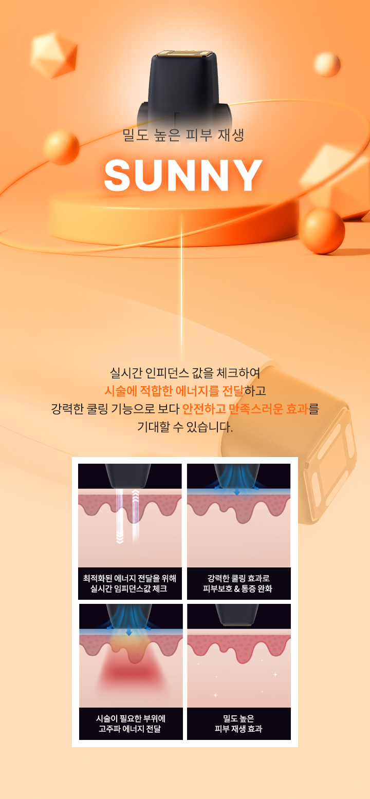 실시간 인피던스 값을 체크하여 시술에 적합한 에너지를 전달하고 강력한 쿨링 기능으로 보다 안전하고 만족스러운 효과를 기대할 수 있습니다.